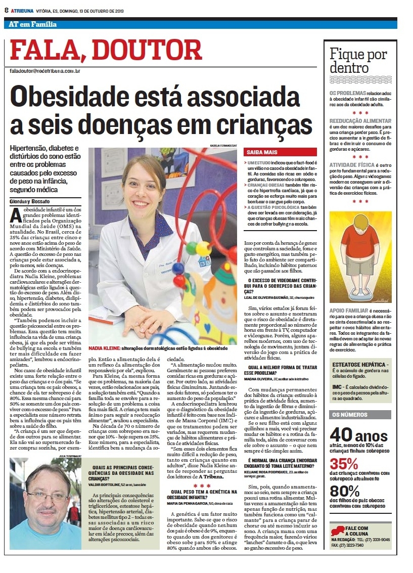 Coluna Fala Doutor Jornal A Tribuna 13/10/2013 Dra Nadia Kleine
