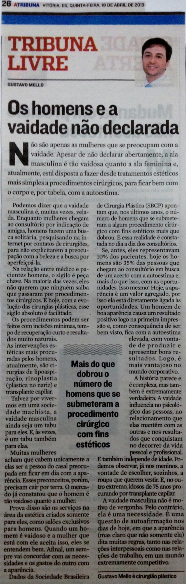 Os Homens e a Vaidade não declarada Coluna Tribuna Livre Dr. Gustavo Mello